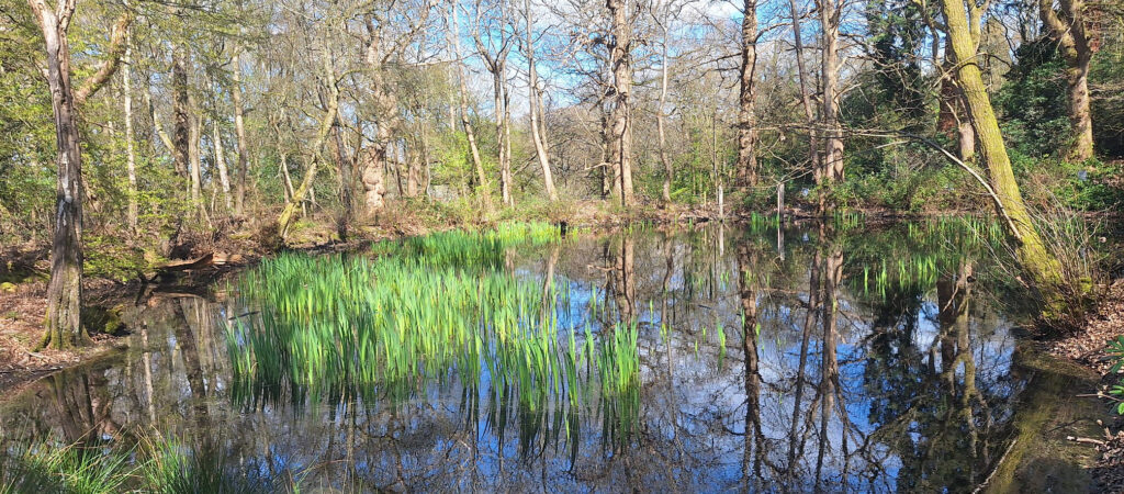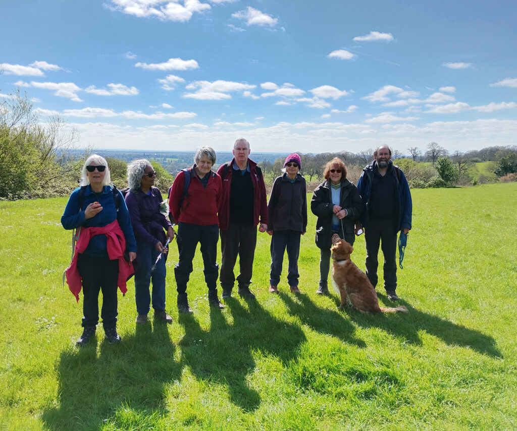 John Harper writes: Tess was joined by 9 two-legged walkers as we set off from a slightly chilly Moor Park station as we skirted the first golf course of the day. We continued on and reached Oxhey Woods where had a brief snack stop and we paused to admire the bluebells – probably a couple of weeks before they reach their best. Shortly after we diverged from the Loop in order to avoid Pinner Wood Farm – which can get seriously muddy! Our detour did allow for a coffee stop at Pinner Hill Golf Club. After skirting Pinner Hill Golf Club, we made our way to the other side of Oxhey Lane and ascended via the edge of Grimsdyke Golf Club and on past Gilberts Lake (photo 1).By now the sun had appeared and we enjoyed a pleasant lunch break at the view point on Old Redding (photo 2 attached}. After lunch it was Harrow Weald Common, Stanmore Common and on to Stanmore Country Park. We were alert to a plaque on a bench which was there to commemorate 28 years as Warden by Margaret’s late husband John. We continued on through the park and exited near Stanmore station for buses/tubes home. Thanks to all and particular thanks for David in his role as co-leader.